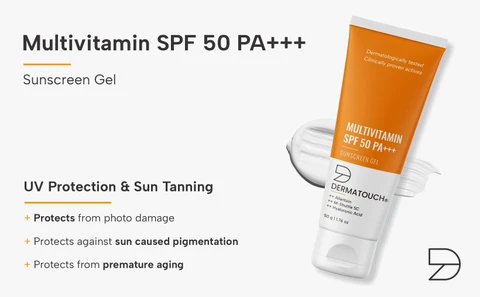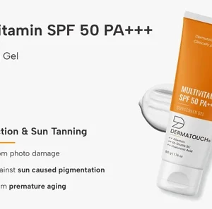 DARMATOUCH Multivitamin SPF 50 PA+++ Sunscreen Gel provides broad-spectrum sun protection for everyday outdoor activities. Its lightweight gel formula spreads easily and absorbs quickly, leaving a comfortable, non-greasy finish. Suitable for daily use, it can be applied as part of your regular skincare routine before sun exposure.