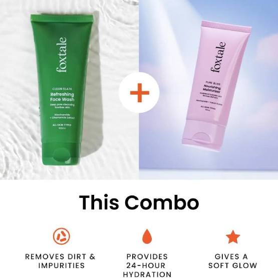 The Foxtale Essentials Combo includes a gel-based face wash and a daily moisturizer designed for everyday facial care use.