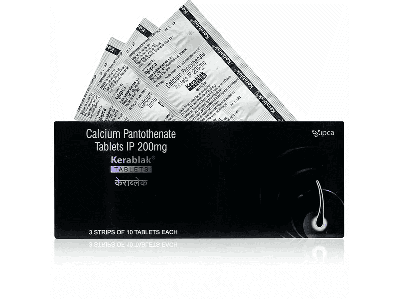 Kerablak Calcium Pantothenate Tablets are nutritional supplement tablets formulated with calcium pantothenate, a form of vitamin B5. These tablets are designed to support daily nutritional intake and can be included as part of a balanced diet and wellness routine.